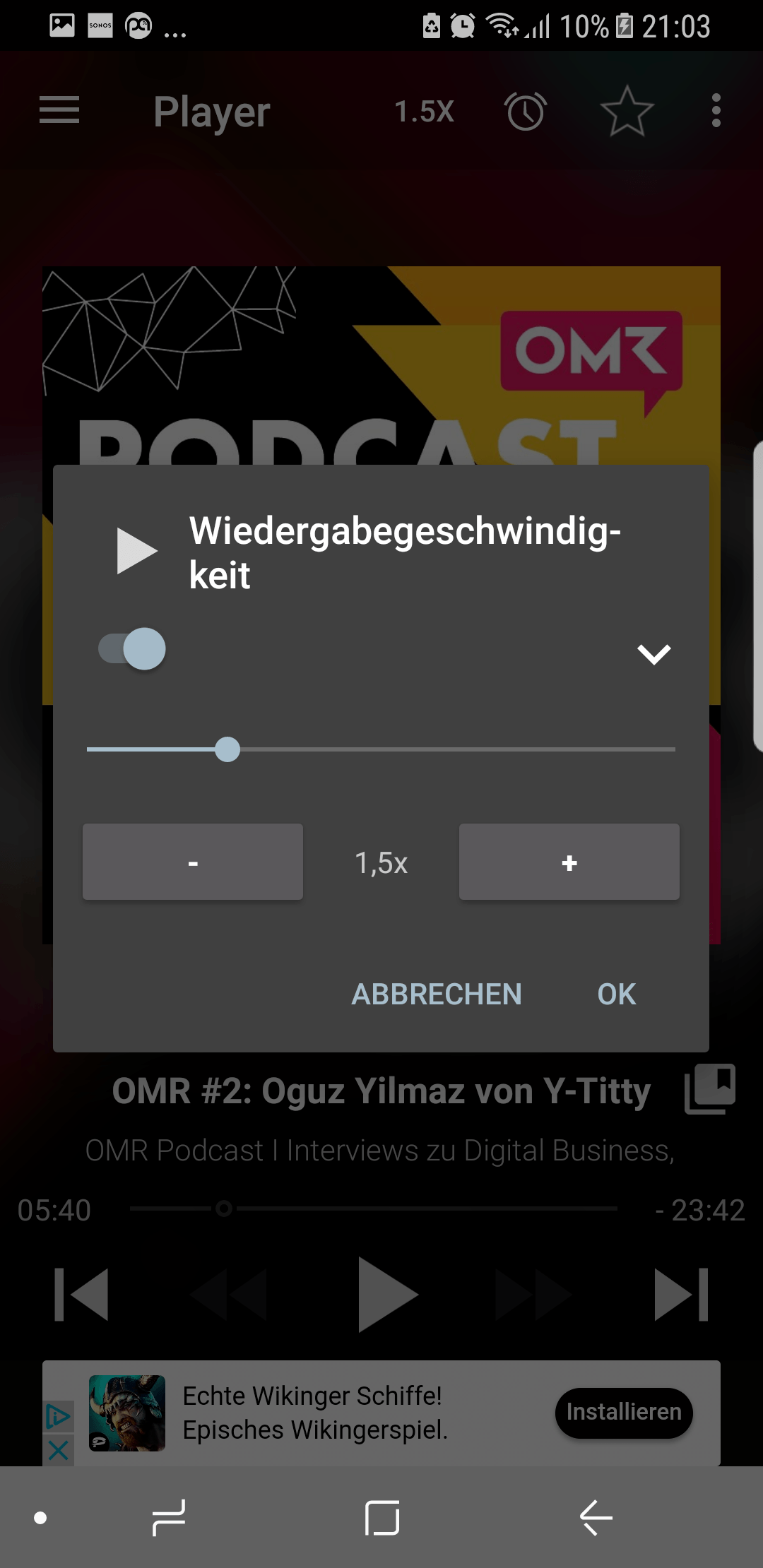 Abspielgeschwindigkeit einstellen bei Podcast Addict